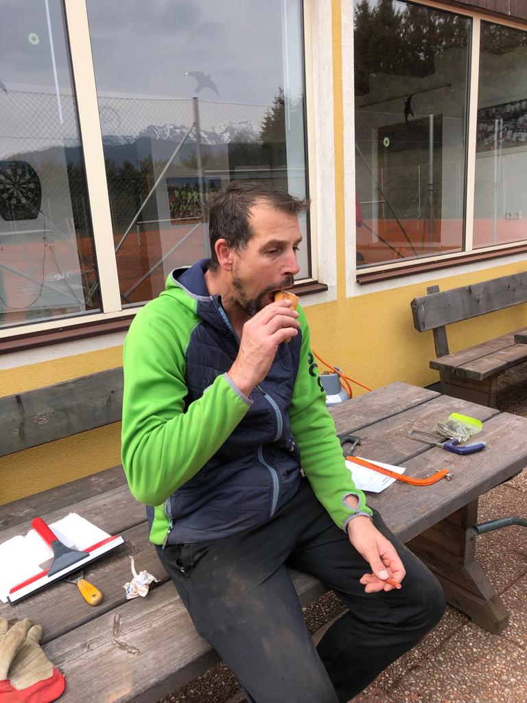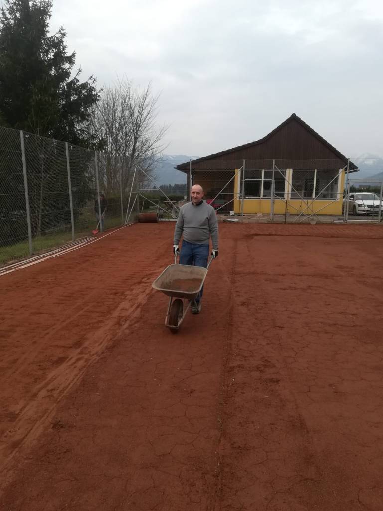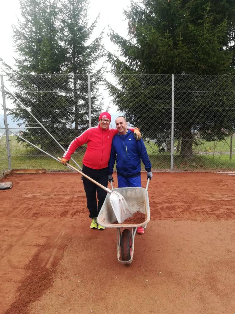Hier einige Impressionen vom Platz herrichten am 13. April 2019. Eine Rekordzahl an Helfern (15 Mann hoch) haben Hand angelegt und die beiden Plätze spielbereit und dass Rundherum sauber gemacht. Und das Vereinsheim inklusive „Kammerl“ wurden einer Grundreinigung unterzogen. Auch die Boccia-Bahn ist bereits wieder in Topzustand. Nach getaner Arbeit gab es eine wohlverdiente Stärkung in Form von 3 verschiedenen Leberkäse-Sorten, welche widerum vom Dets Leitner organisiert wurden. Danke dafür. So, nun steht einer tollen Saison des TC-GAI nichts mehr im Wege.