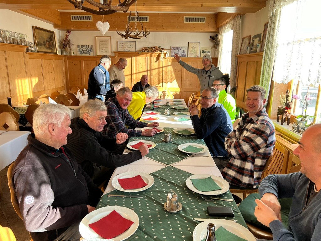 EISSCHIESSEN 2022 Vergleichskampf TC-Gai gegen „Krumpler“16 Männer sind der Einladung zum Eisstockschießen TC-Gai gegen die „Krumpler“ auf die Eisbahn Mossauer „Hart“ ins Laintal am 29.01.2022 gefolgt. Bei ausgezeichneten Eisbahnbedingungen und bestem Winterwetter wurde der Bewerb um 14.30 Uhr gestartet.Die Moarschaft des TC-Gai wurde aus Dets und Siegi gebildet. Die Knechte Tom, Gerhard, Peter, Luci, Uwe und Hans folgten penibel den Anweisungen des Moars Dets.Einige Schützen der „Krumpler“ dürften die lautstarken Kommandos ihrer Moare Manfred und Hubert falsch verstanden haben, sie schossen ihre geliebten Holzeisstöcke sehr oft in die falsche Richtung.So kam es, wie es kommen musste: die Mannschaft des TC-Gai fertigte die „Krumpler“ mit 9:1ab, wobei es bei der letzten Kehre sogar zu einem Schneider kam. Die Tennisburschen mussten gezwungenermaßen ihre Eisstöcke auf den Schultern zurücktragen. Nach getaner Arbeit wurde bei Wein, Bier und gutem Essen getratscht gelacht und an der Taktik für das Schießen 2023 gefeilt. Der TC-Gai bedankt sich bei allen Teilnehmern für den gelungenen, hoch dramatischen und fairen Wettkampf mit einem dreifachen Stock heil – Stock heil – Stock heil.Unbestätigten Gerüchten zu Folge, soll aufgrund dieser doch klaren Unterlegenheit, im Schulungs- und Übungsplan der „Krumpler“, für 2023 nun auch ein Trainingstermin „Eisstock“ eingetragen worden sein. Man darf also gespannt sein wie die Entscheidung im nächsten Jahr aussehen wird……….Hier noch ein paar Bilder von der Veranstaltung