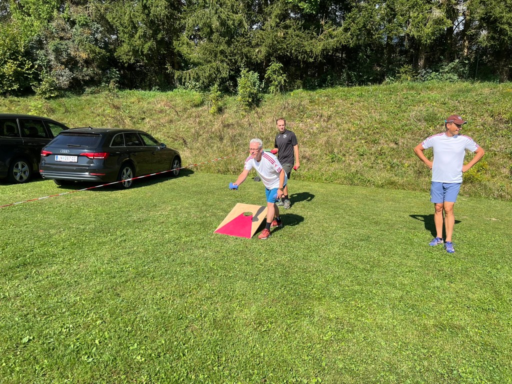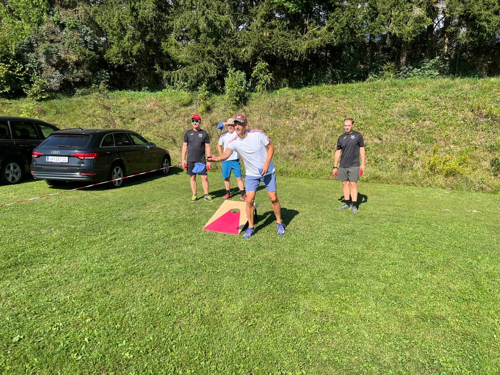 Nun wurde noch der letzte Bewerb Cornhole durchgeführt. Ein Bewerb der fliegenden Säcke.